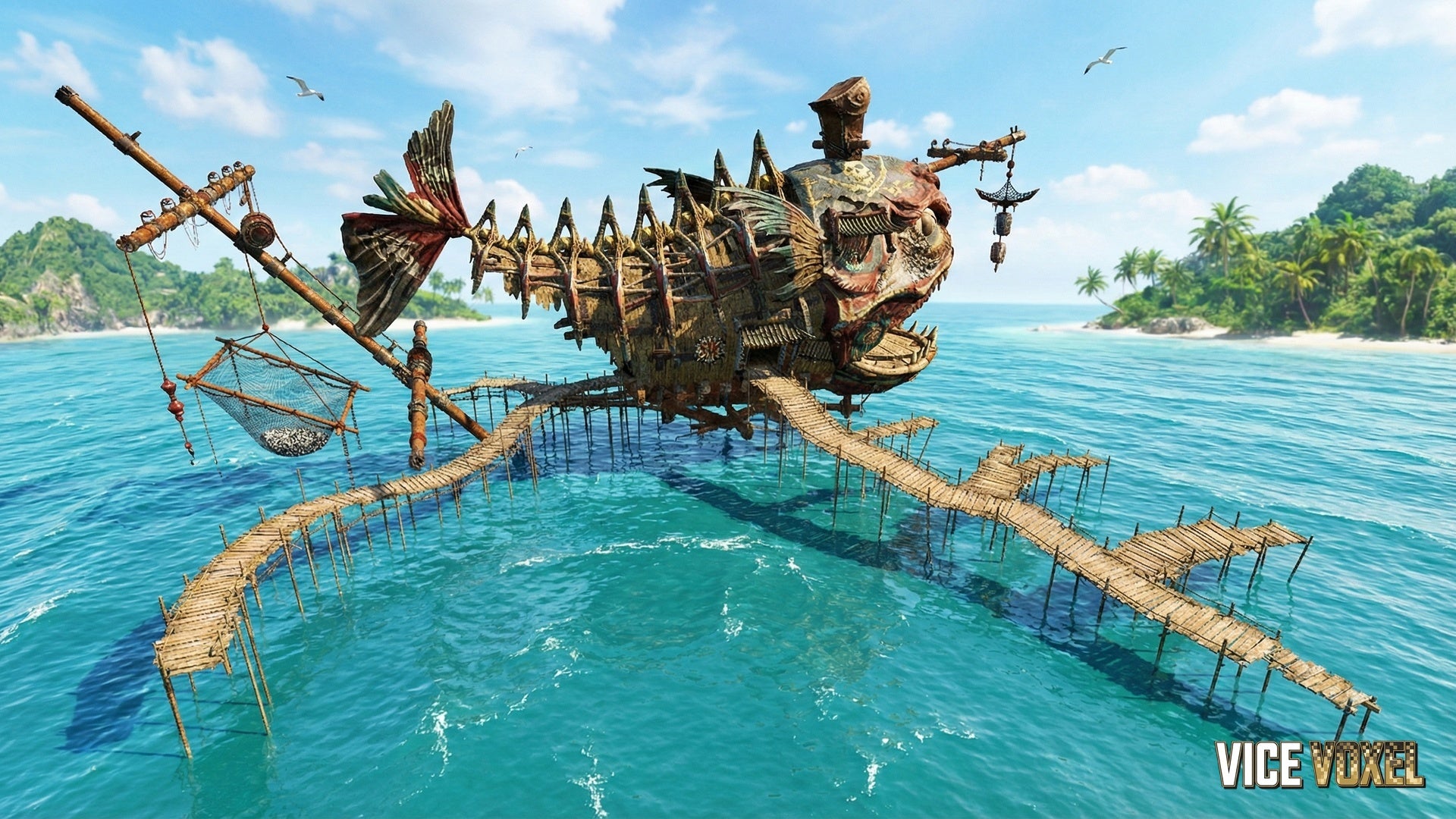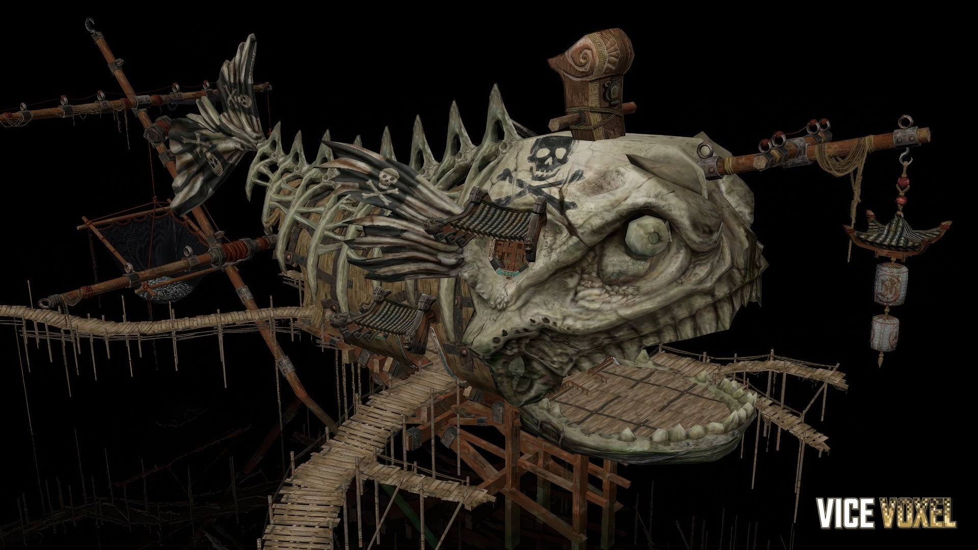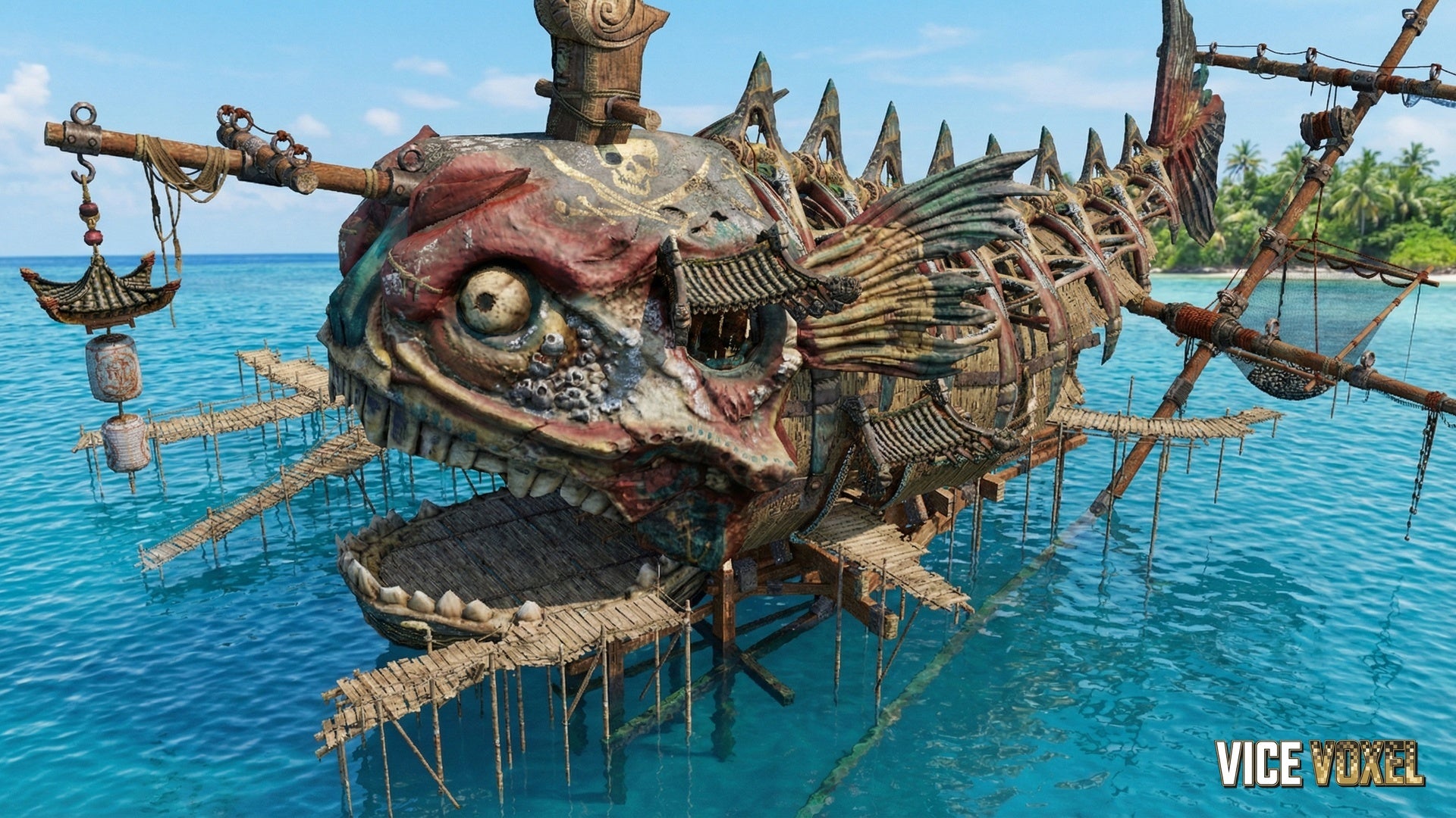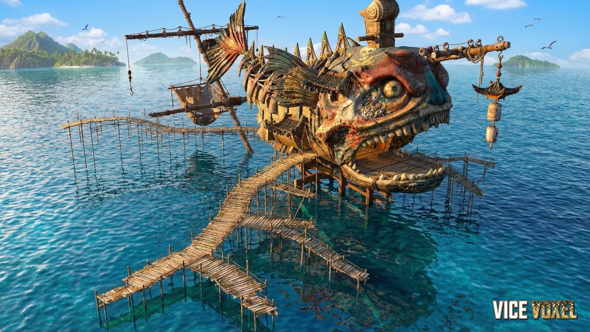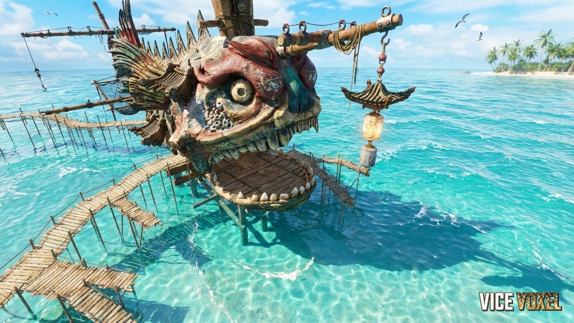 Giant pirate hideout structure (creature-shaped main hub)